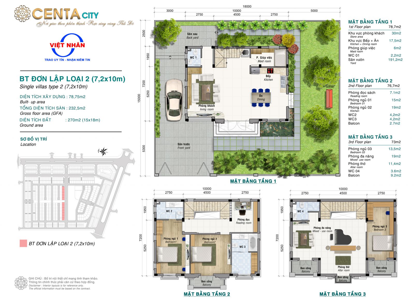 Biệt Thự đơn lập: 216m2 – 270 m2